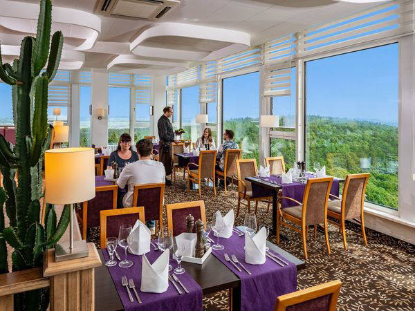 Mit 457 komfortablen Zimmern, ausgestattet mit kostenfreiem WLAN, Safe, TV und modernen Badezimmern, bietet das Hotel einen erholsamen Rückzugsort für Paare, Familien und Gruppen. Besonders beeindruckend ist das Panoramarestaurant in der 12. Etage, das nicht nur kulinarische Highlights, sondern auch einen fantastischen Blick über die Bergwelt des Thüringer Waldes bietet.