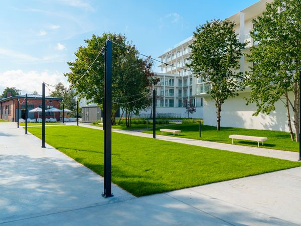 Mit 115 luxuriösen Apartments bietet das Aparthotel Arche Fabryka Samolotów Mielno einen reizvollen Ausblick auf den Wald, das Meer und den See, jeweils mit einem eigenen Balkon. Das Aparthaus präsentiert sich in modernem Design und greift gleichzeitig das historische Erbe der Sanatorien in Mielno sowie den Charakter des ehemaligen Luftwaffenstützpunktes auf. Der polnische Name des Hotels, der Flugzeugfabrik bedeutet, bezieht sich jedoch auf die Hangars und den Luftwaffenstützpunkt Uniescie (dt. Nest) an gleicher Stelle. Die Inneneinrichtung ist von der Schönheit des Ostseestrandes inspiriert, einem der schönsten in Europa, der von goldenem Sand geprägt ist, der in der Sonne schimmert.