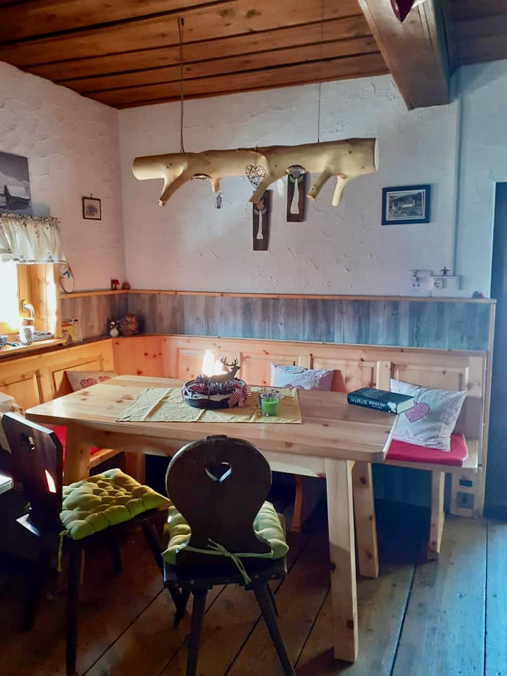 Wasser gibt es am Brunnen direkt neben der Hütte. Strom für Licht liefert eine kleine Solarplatte. In einem ca. 250 m entfernten Almgasthof gibt es zusätzlich die Möglichkeit warm zu duschen.