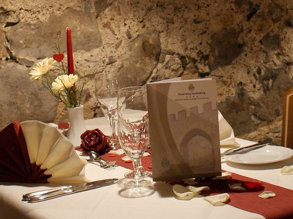 Kulinarische Highlights erwarten Sie im À-la-carte-Restaurant „Ritterkeller“, wo regionale und internationale Spezialitäten mit viel Liebe zum Detail serviert werden. Im Sommer genießen Sie Ihre Mahlzeiten auf der idyllischen Terrasse mit Blick über das Lahntal, während in den kühleren Monaten das Kaminzimmer zum gemütlichen Verweilen einlädt. Der historische Rittersaal bietet den perfekten Rahmen für festliche Anlässe – von romantischen Hochzeiten bis hin zu stilvollen Feiern.