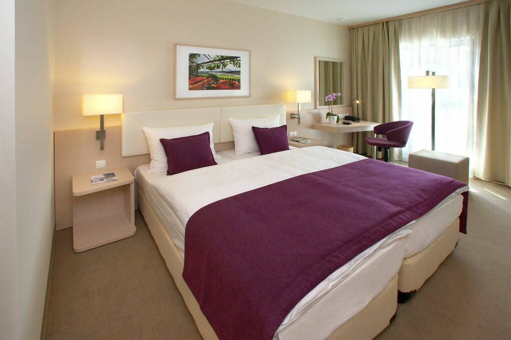 Das Hotel verfügt über 120 elegant eingerichtete Zimmer mit hochwertigen Boxspringbetten, Klimaanlage, und modernsten Annehmlichkeiten wie Highspeed-WLAN und Flatscreen-TV mit Sky. Starten Sie mit einem reichhaltigen Frühstück in den Tag und lassen Sie den Abend in unserer stylischen Bar ausklingen, die eine Vielzahl an Getränken und Snacks bietet.