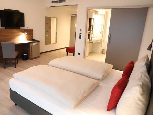 Mit 84 Zimmern, davon 18 rollstuhlgerecht, bietet das Hotel großzügige Raumgestaltung mit bodengleichen Duschen, durchdachten Leitsystemen und kontrastreicher Ausstattung. Einige Zimmer verfügen über Verbindungstüren – ideal für Begleitpersonen oder Familien. Klimaanlage, Kaffee-/Teestation, Safe und moderne Technik gehören zur Standardausstattung.