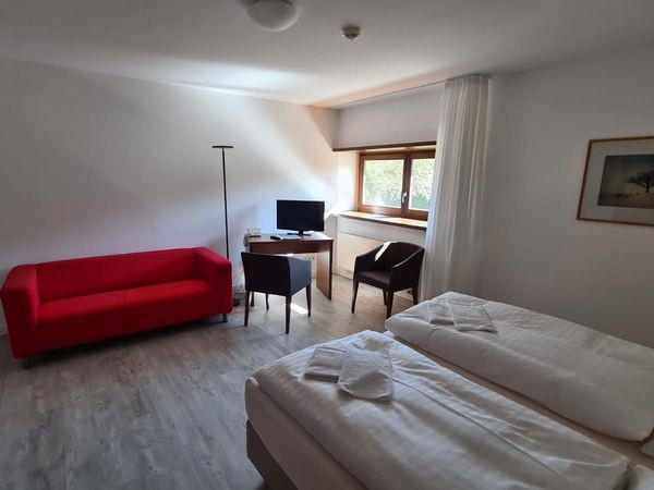 Die Gästezimmer sind schlicht und stilvoll, wahlweise im historischen oder modernen Ambiente eingerichtet. Sie bieten Raum zum Durchatmen – ganz ohne Ablenkung. WLAN ist selbstverständlich vorhanden, Fernseher bewusst nur vereinzelt, denn im Kloster geht es vor allem um das Wesentliche. In den liebevoll gepflegten Gärten, am Mühlbach oder unter alten Obstbäumen können Gäste die Langsamkeit wiederentdecken und den Klang der Natur neu hören lernen.