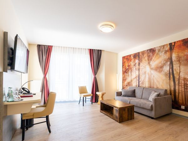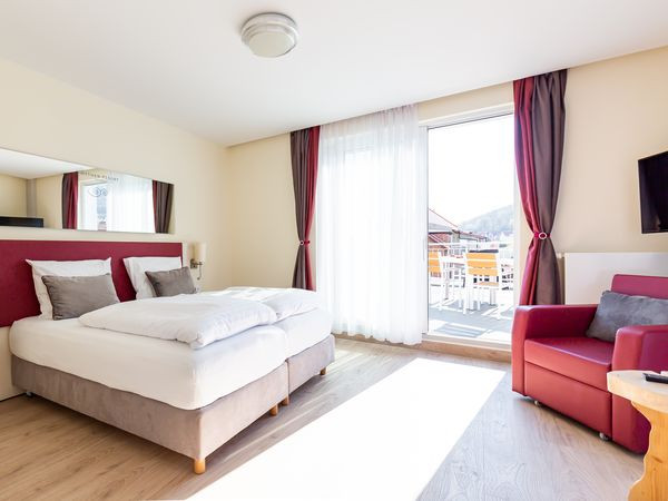 Ein Highlight ist der hauseigene Wellnessbereich: In der Sauna "Loki" erwartet Sie wohlige Wärme, ergänzt durch entspannende Aufgüsse mit Harzer Kräutern und ein liebevoll gestalteter Ruheraum. Wer noch tiefer in die Natur und Geschichte eintauchen möchte, erkundet direkt vor der Hoteltür den berühmten Mythenweg Thale oder startet auf dem Harzer Hexenstieg.