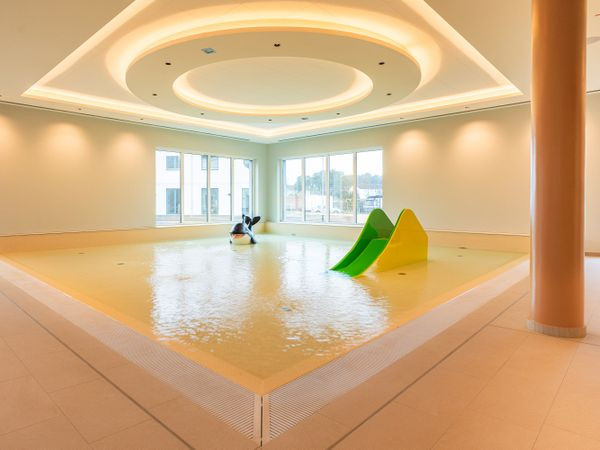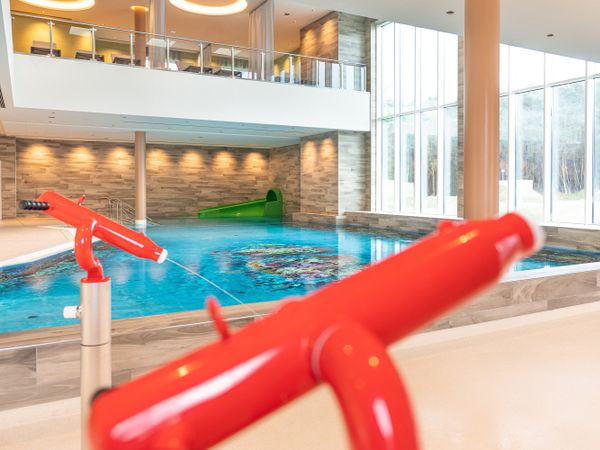 Der Wellness- und Freizeitbereich des Resorts bietet eine Oase der Entspannung und Aktivität. Hier können Gäste im großen Innenpool mit einer 84 Meter langen Außenrutsche planschen, in verschiedenen Saunen entspannen und im Spa-Bereich wohltuende Behandlungen genießen. Es gibt auch spezielle Einrichtungen für Kinder, wie ein Kinderbecken und eine Kindersauna.
