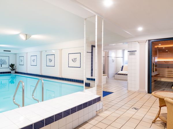 Für Entspannung und Erholung sorgt der großzügige Wellnessbereich. Ein Schwimmbad lädt zum Bahnenziehen oder einfach zum Treibenlassen im warmen Wasser ein. Die Sauna und das Dampfbad bieten zusätzliche Wohlfühlmomente, lösen Verspannungen und lassen den Alltag schnell vergessen. So entsteht eine Oase der Ruhe, die Körper und Geist gleichermaßen regeneriert.