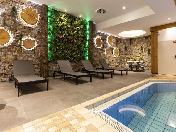 Im Hotelrestaurant wirst du mit regional inspirierten Gerichten verwöhnt, ergänzt durch eine gemütliche Bar und eine einladende Terrasse, auf der man den Sonnenuntergang genießen kann. Für Erholung sorgt ein gepflegter Wellnessbereich mit Sauna, Dampfbad und Spa-Anwendungen. Ganzjährig steht ein Indoor-Pool zur Verfügung, sodass du jederzeit in wohligem Ambiente schwimmen kannst.