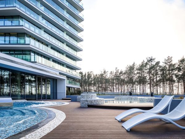 Das moderne Design des Hotels erinnert an das Rauschen der Wellen und bietet großzügige Suiten, einen umfangreichen Wellness- und Spa-Bereich sowie direkte Strandnähe. Ob entspannen im Spa-Bereich oder aktive Freizeitgestaltung - das Wave Międzyzdroje Resort & Spa Hotel bietet für jeden Geschmack etwas: