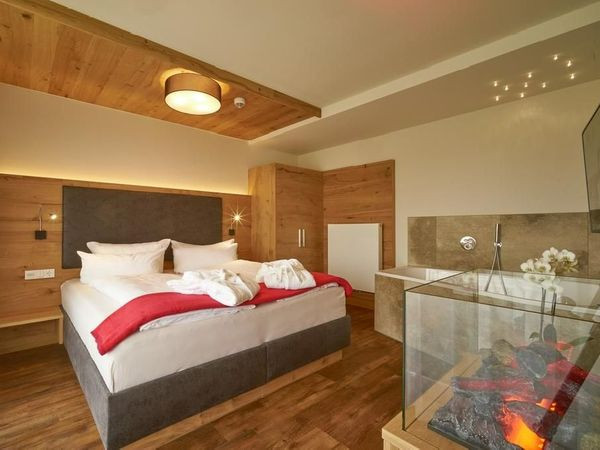 Die stilvoll eingerichteten Zimmer und Suiten bieten höchsten Wohnkomfort, viele mit Balkon oder Terrasse. Der großzügige Wellnessbereich mit Panorama-Sauna, Indoorpool, Naturbadeteich und einem breit gefächerten Massage- und Kosmetikangebot sorgt für Tiefenentspannung.